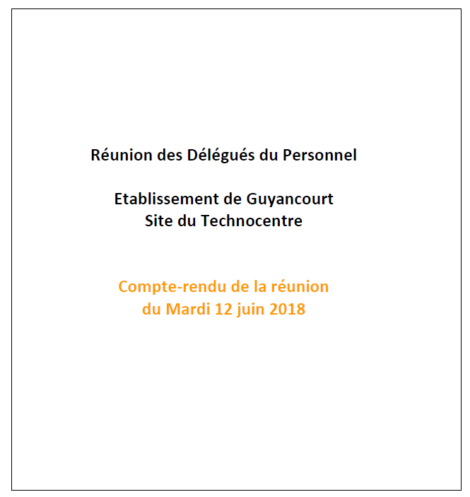 Réunion des Délégués du Personnel du Technocentre du 12 juin 2018 :