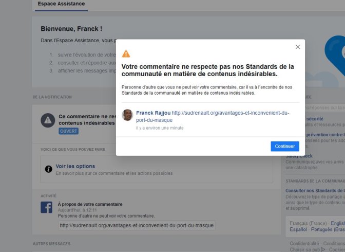 Juste pour vous informé qu’il y aurait pour FB qui contreviendrait « aux contenus acceptables »...