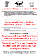 Les syndicats CGT, SUD et SM-TE du Technocentre appellent à la mobilisation face au projet de réforme des retraites du gouvernement. Venez en débattre, vous informer… Rassemblement dans le hall de la Ruche Mercredi 4 décembre de 12h à 13h