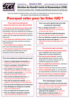 - Orientations économiques et sociales : En CE, les élus SUD ont défendu une politique sociale plus humaine et favorable aux salariés, face une orientation axée sur l’atteinte de résultats financiers toujours plus élevés et à court terme. Pour peser et exercer davantage de contre-pouvoir, les élus SUD ont besoin de votre soutien.