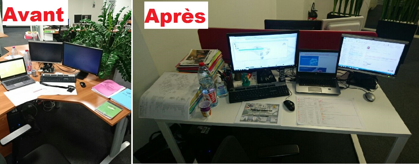 Actuellement, une armoire de rangement au poste de travail (largeur 120cm, hauteur 148cm) offre environ 4 ml (mètre linéaire) de rangement de proximité. Le nouveau référentiel ne met à disposition des salariés qu’environ 1,5 ml comme rangement de proximité + 1,5 ml de rangement en armoire partagée en extrémité de plateau. Une fois encore, il est appliqué une diminution drastique qui ne tient