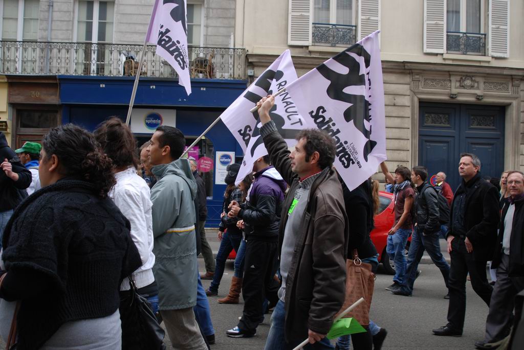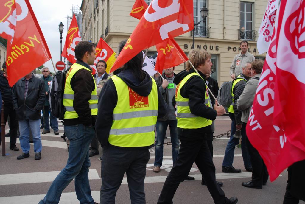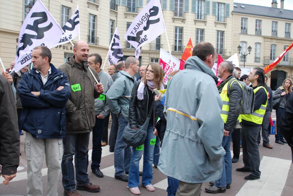 Manifestation commune des salariés du Technocentre Renault et des lycéens de Versailles.