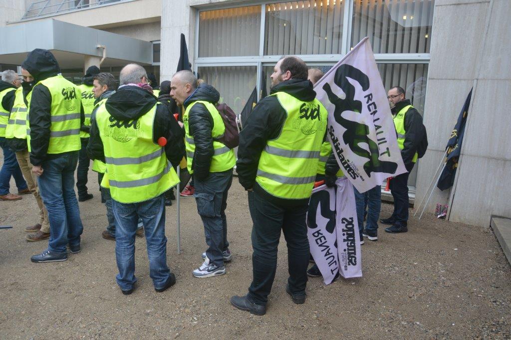 Manifestation des syndicats SUD Renault lors des NAO à Boulogne-Billancourt le 15 février 2016
