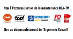 25 mars 2021, par sud tcr5 organisations syndicales de l’établissement Guyancourt/Aubevoye appellent les salariés Renault et sous-traitants à débrayer massivement mardi 30/03 à 10h devant le CTA et au TCR contre l’externalisation de la maintenance des moyens d’essai et le démantèlement de l’Ingénierie.
