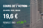30 avril 2020, par cmoUne dépêche de l’agence Reuters, annonçant que Renault allait faire entre 100 et 200 millions d’euros d’économie sur sa sous-traitance, a suffi pour faire bondir l’action Renault de 7,8% en quelques heures.